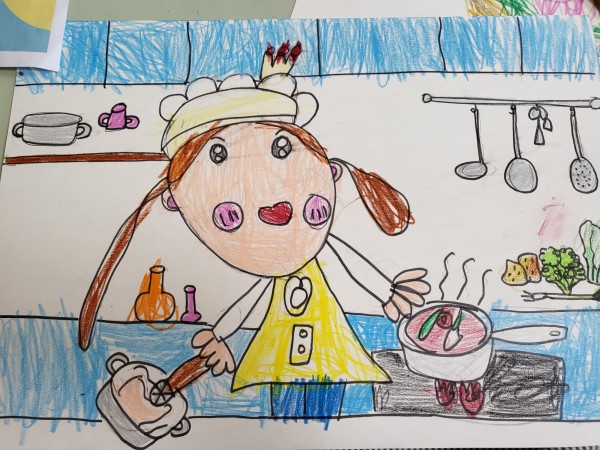 6. 작품에 대한 설명 : 하은이는 세가지의 장래희망이 있다고해요... 그중 아빠에게 맛있는 음식을 만들어주는 요리사가 되고 싶다고 합니다^---^